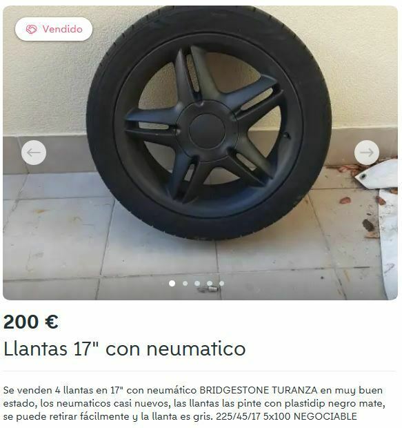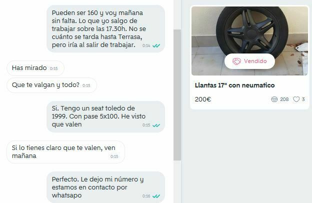 Les dejamos el anuncio tal cual lo encontramos nosotros y las negociaciones con el vendedor (muy directas y muy rápidas) para terminar haciéndonos con estas llantas y neumáticos por 160 euros.